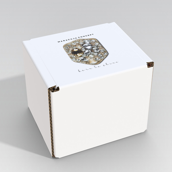 Cutie alba cu autoformare carton CO3 / ondula E ,culoare alba ,full print interior, alb la exterior, cod FEFCO 0427 .