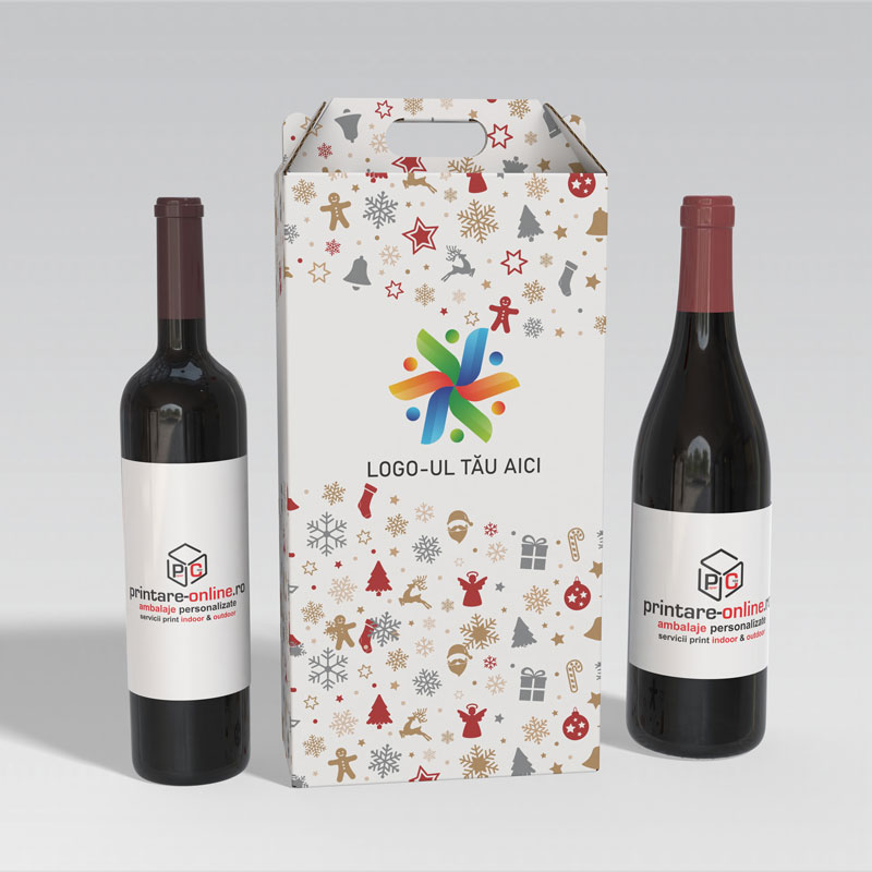 Cutie 2 sticle de vin personalizata -Crăciun-