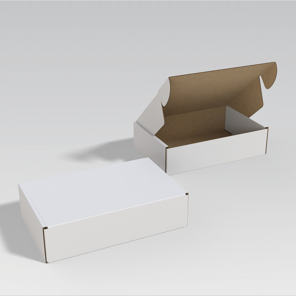 Cutie cu autoformare carton CO3 / ondula B, alba sau natur exterior , interior natur , cod FEFCO 0427 .