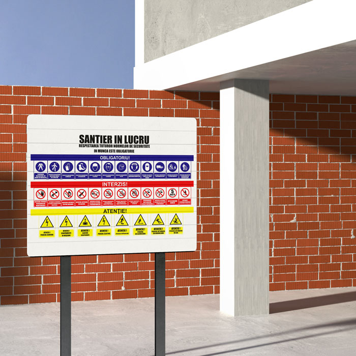 Panou Șantier în Lucru este obligatoriu a fi realizat și afișat în mod vizibil, atunci când se realizeaza lucrări de construcție, conform Ordinului Ministrului lucrarilor publice și amenajării teritoriului nr. 63/N din 11 august 1998